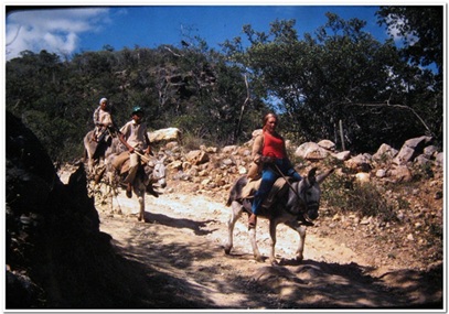 Drie ezels bereden door twee vrouwen en een man op weg naar beneden. Het leverde een uniek plaatje op maar bij thuiskomst bleek ons vermoeden waar. Die laatste vrouw was duidelijk zwanger. Voor we het in de gaten hadden weken ze van de slechte weg af en doken ze via een ezels paadje tussen de struiken door en waren ze verdwenen. Hebben zij onderdak gevonden op die avond van de 24e december 1976? We zullen het nooit weten maar heb er wel vertrouwen in.