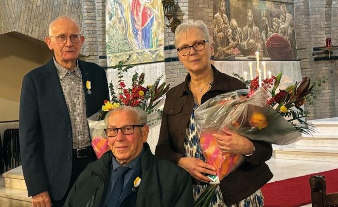 Drie jubilarissen dames- en herenkoor tijdens Caecilia geëerd