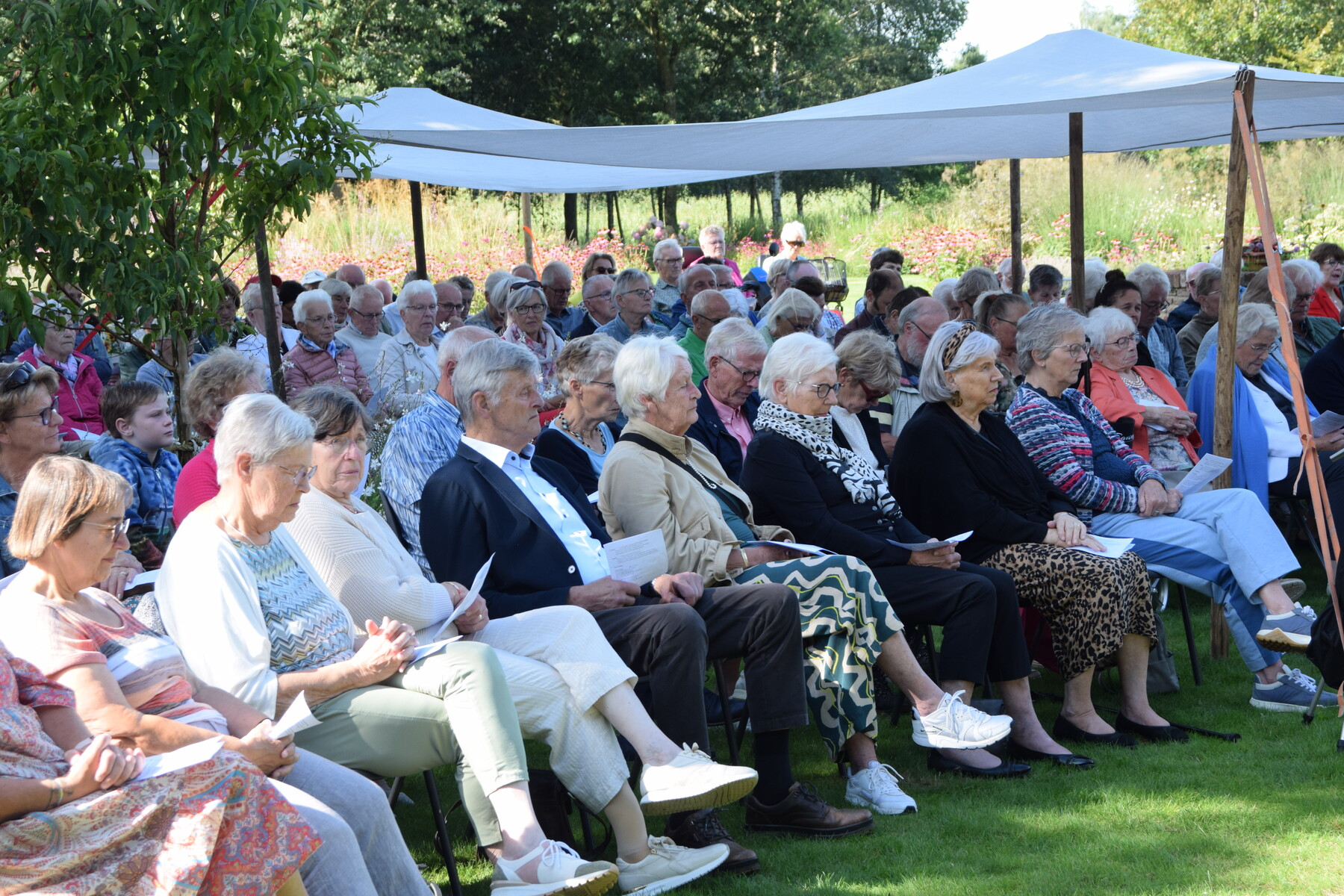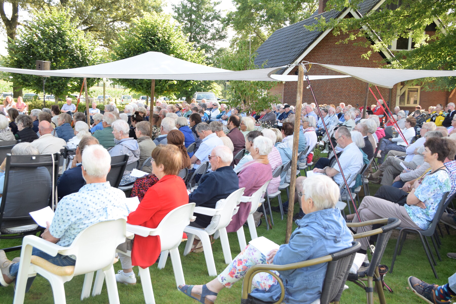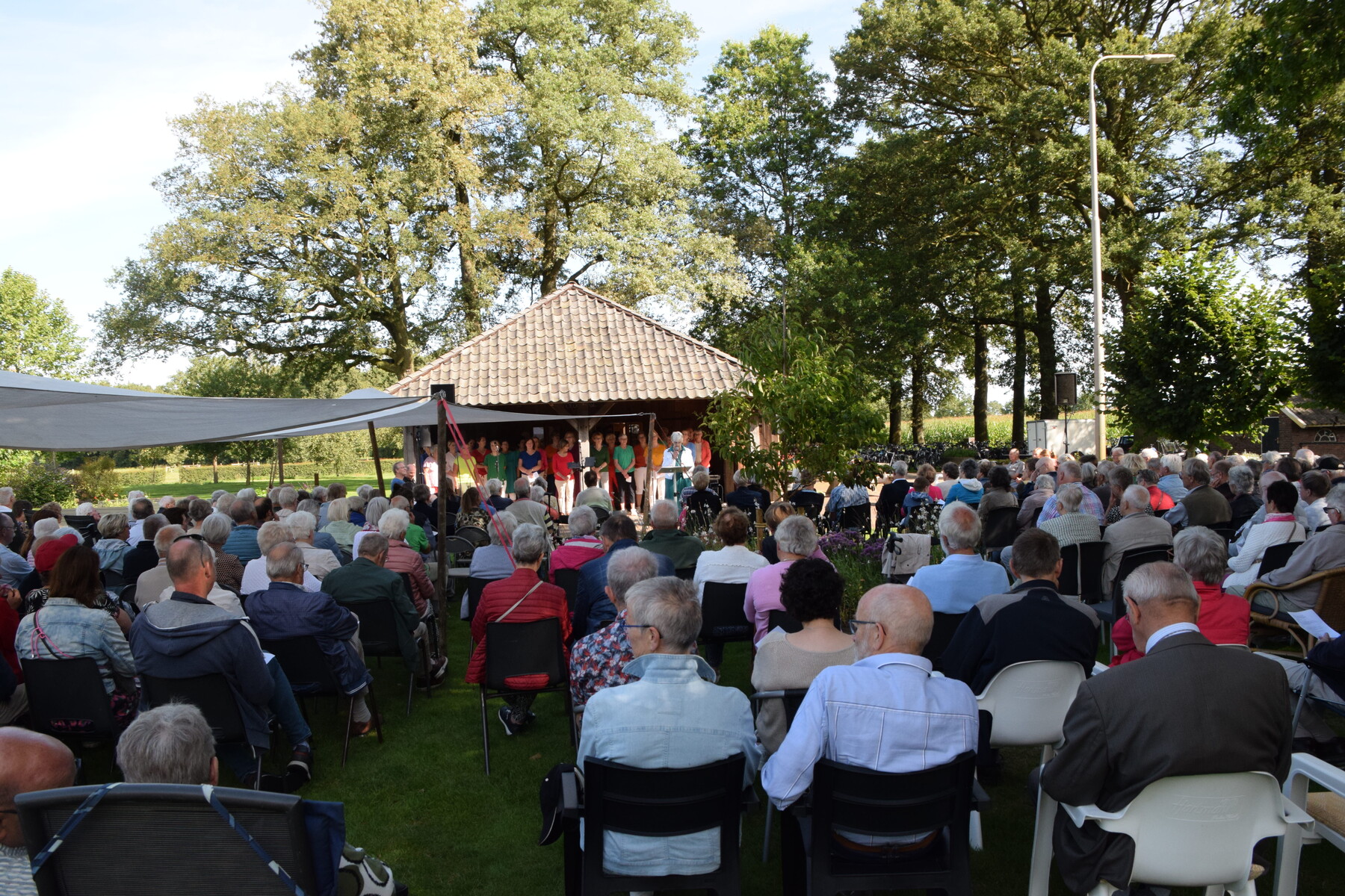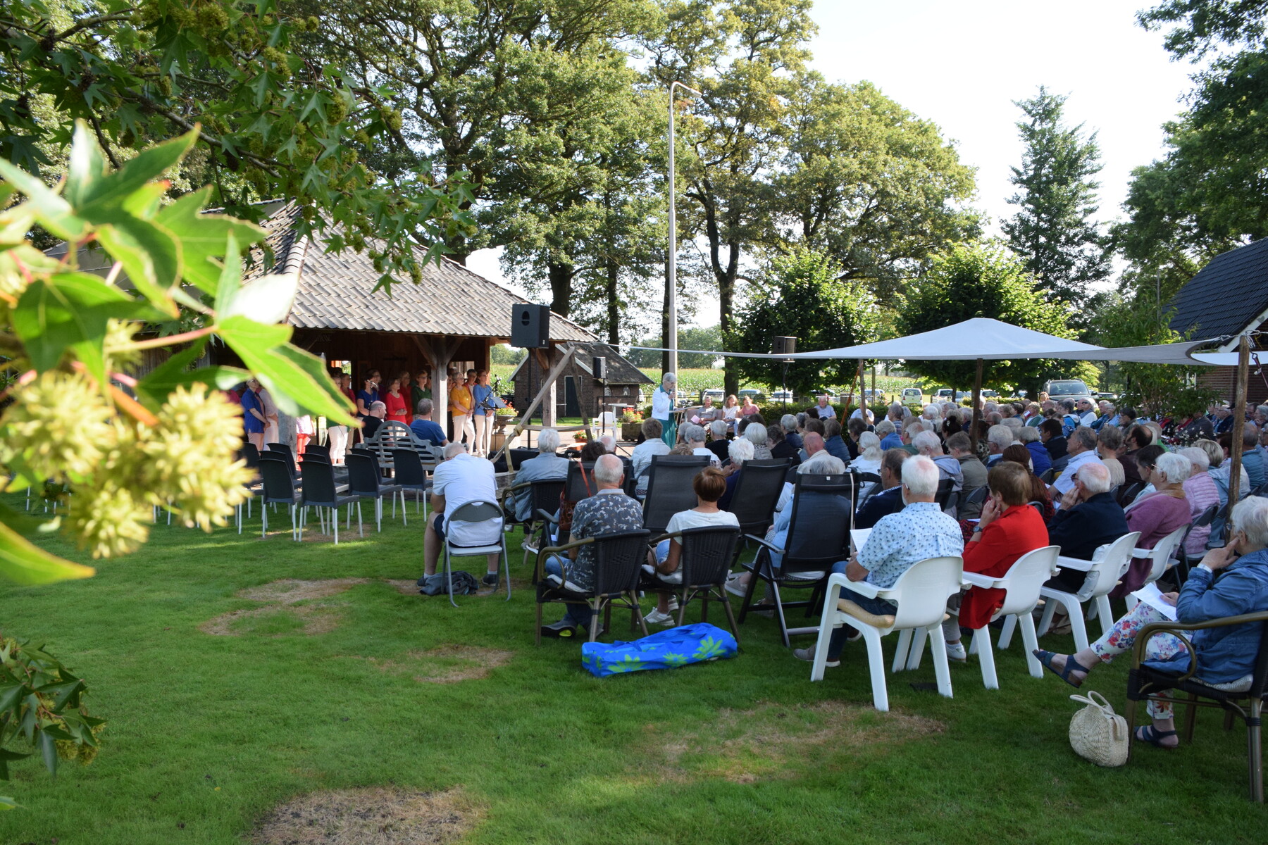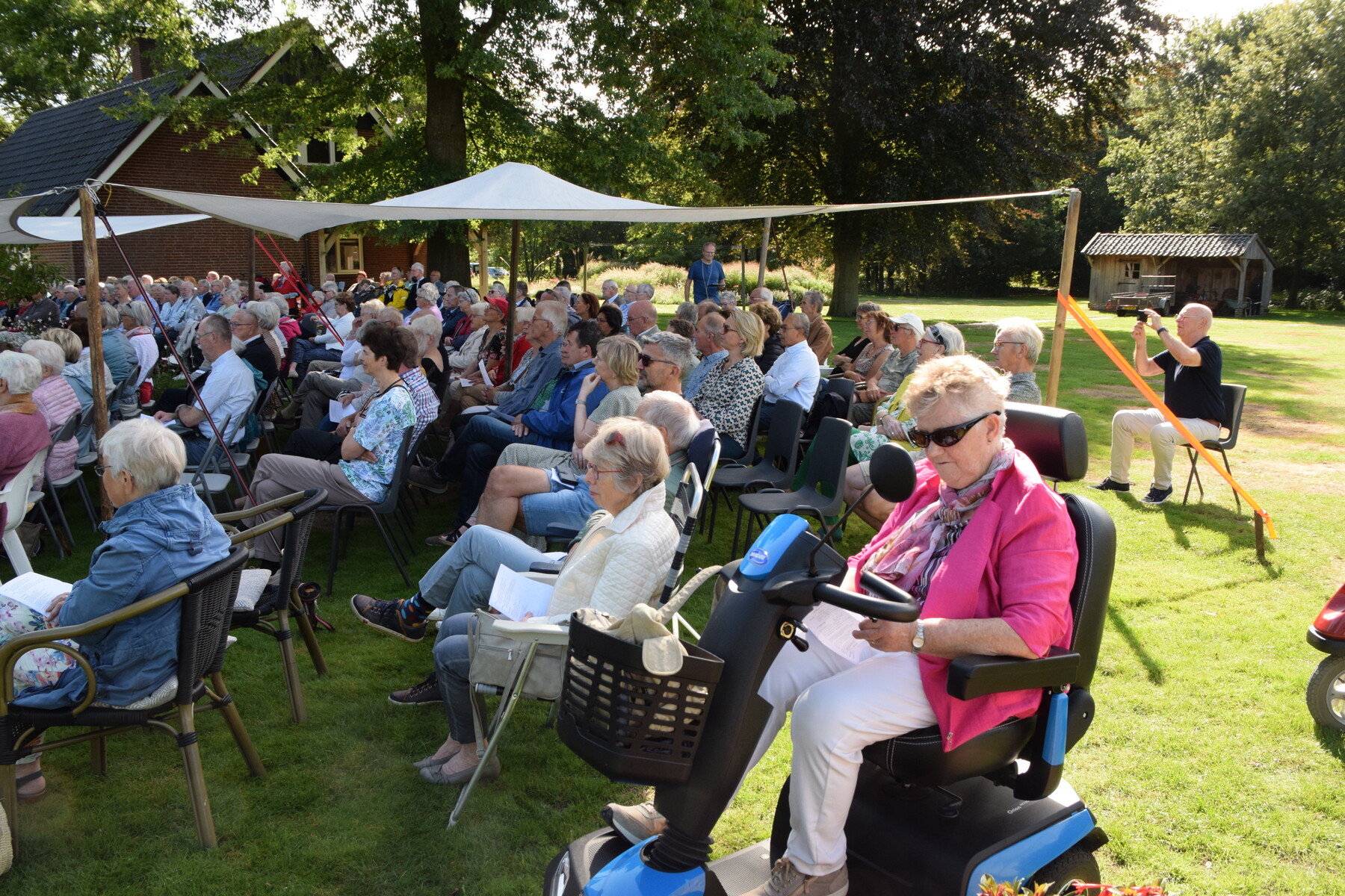 Foto's van de oecumenische openlucht viering op 13 augustus 2023 in de tuin van Koffiesköpke Olde Moat. Voorgangers waren ds. Hans Hinkamp en mevr. Betsy Hummelink. De muzikale begeleiding was in handen van het popkoor Friends.