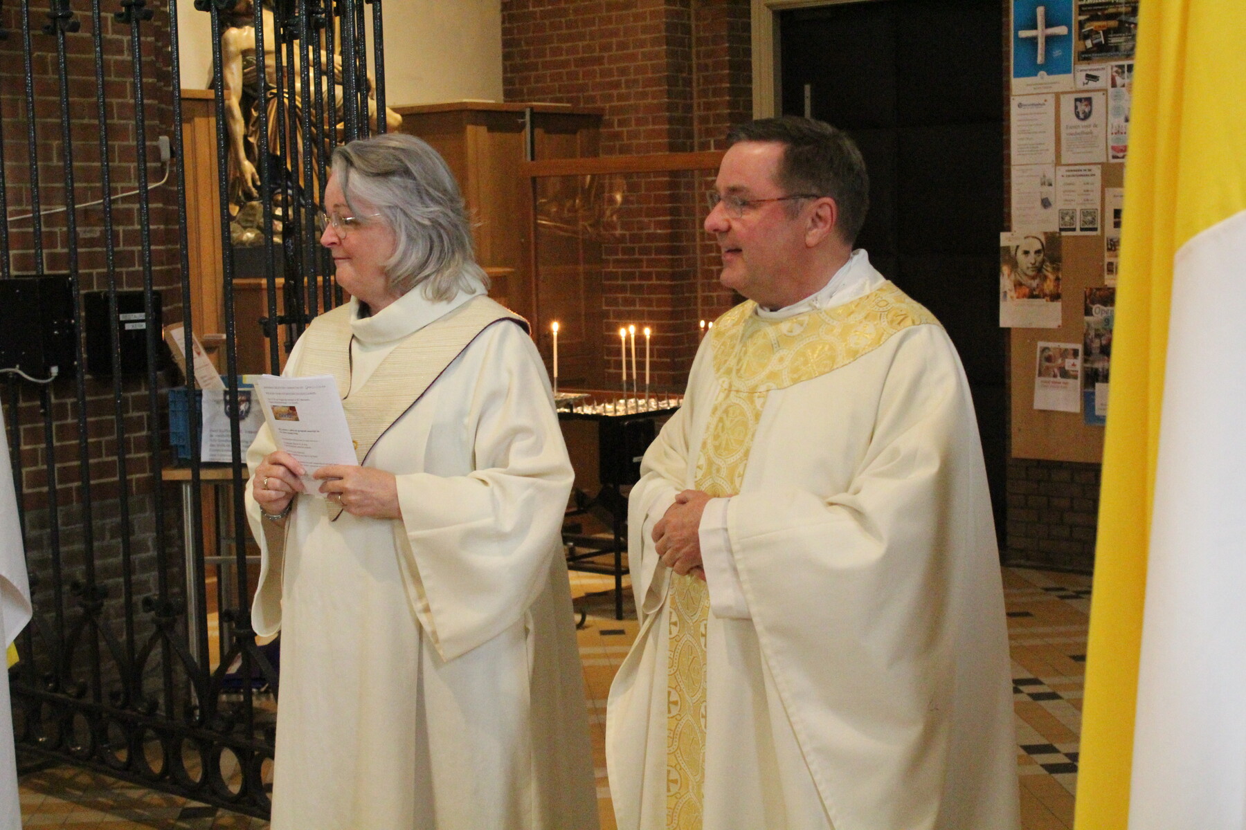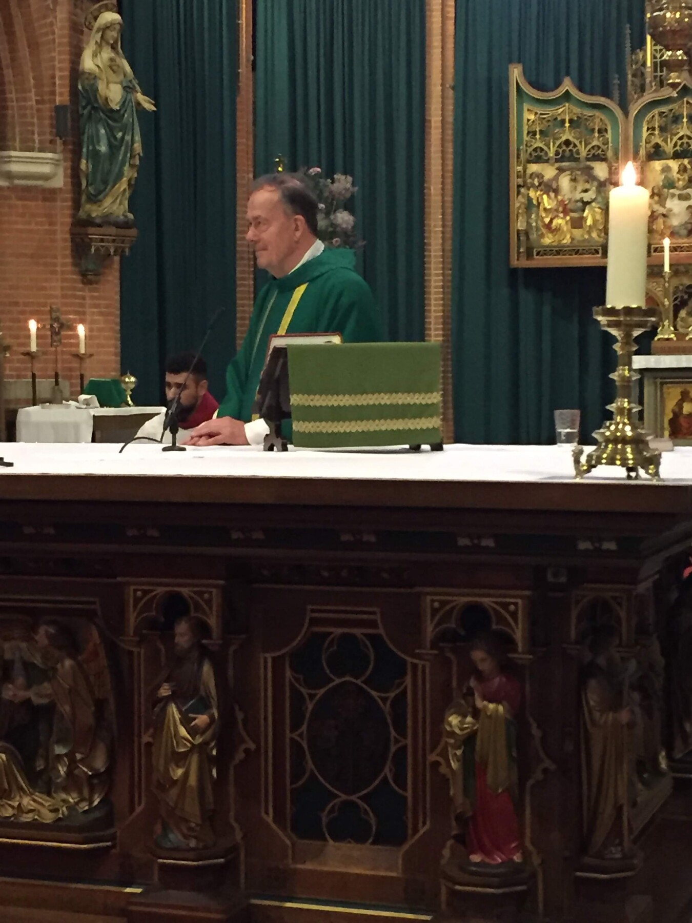 Zondag 16 juni werd pastoor Baneke aan het eind van de dienst in het zonnetje gezet. Hij is een graag geziene celebrant binnen onze parochie. Hij vierde zijn 10-jarig priesterschap. Namens het parochiebestuur werd hij toegesproken door Betsy Hummelink. Ook kreeg hij een bloemetje en een mooie attentie. Wij feliciteren pastoor Baneke met dit jubileum. Wij hopen dat hij ons pastorale team nog lang kan ondersteunen.