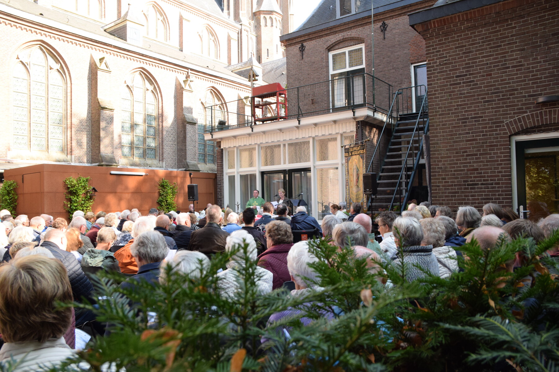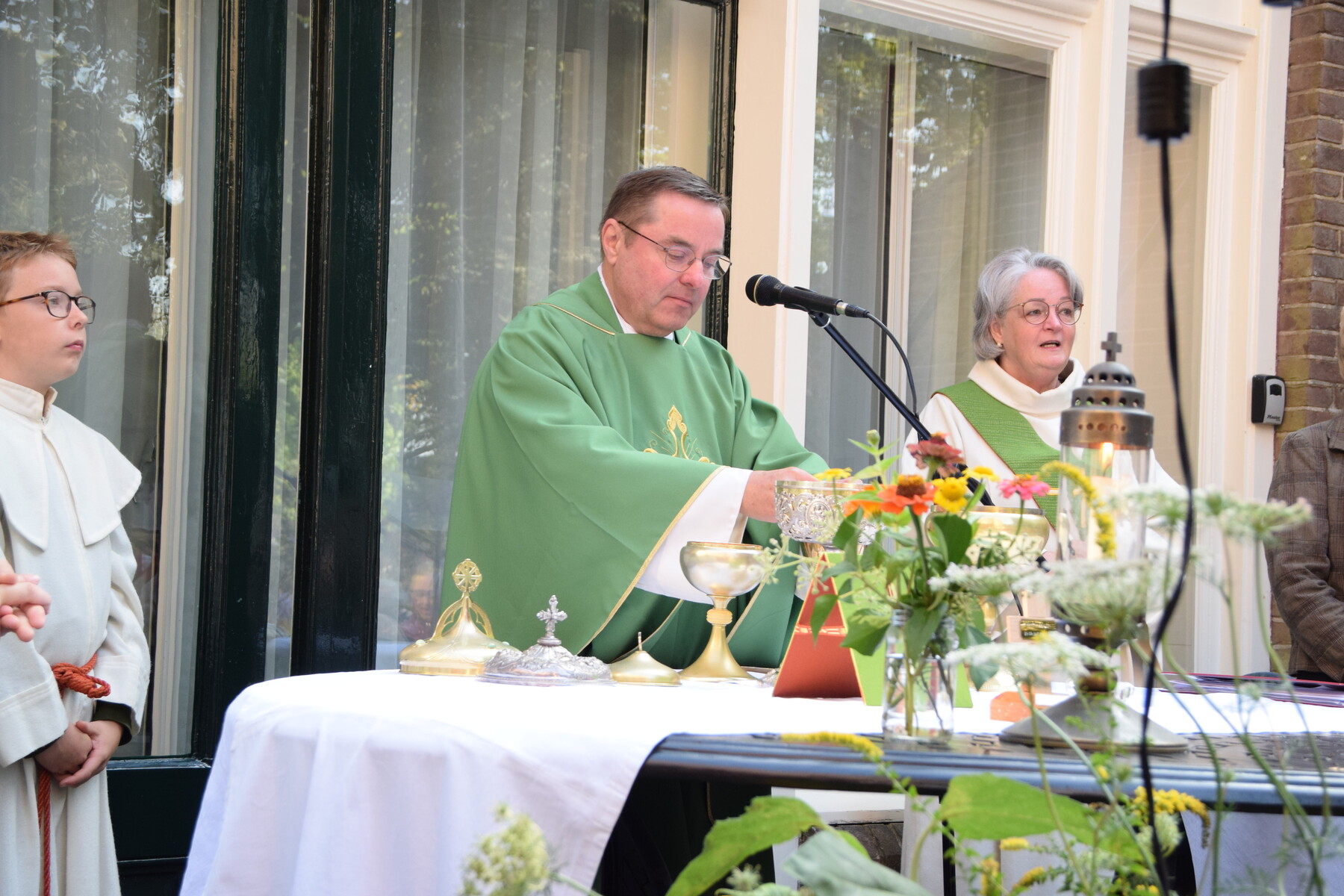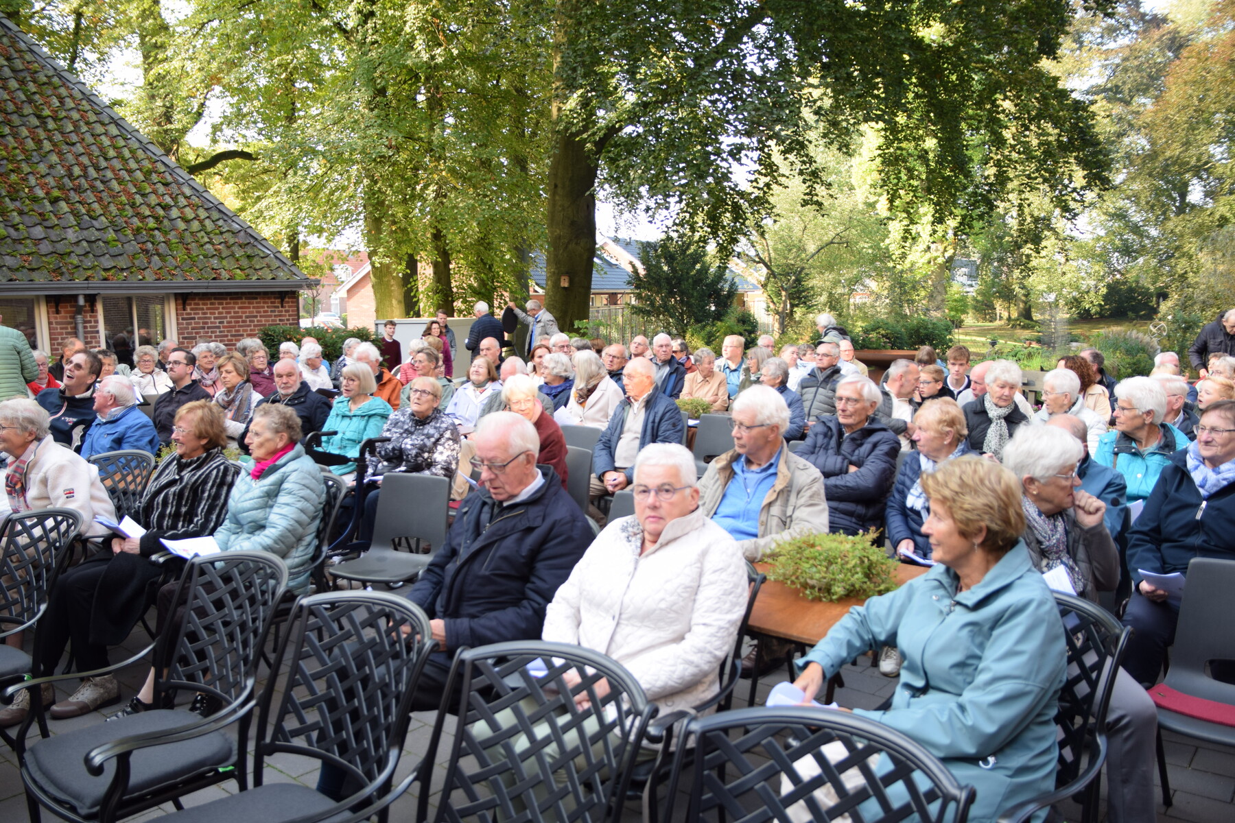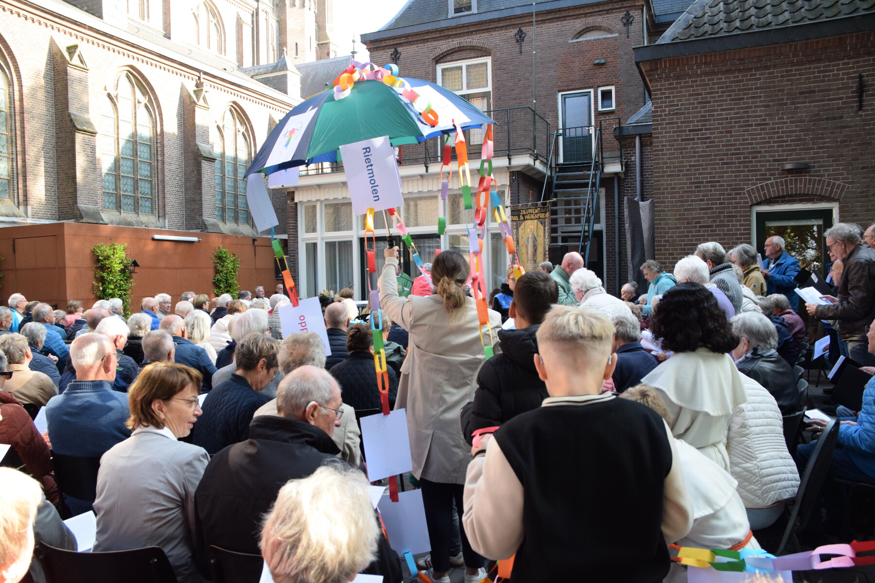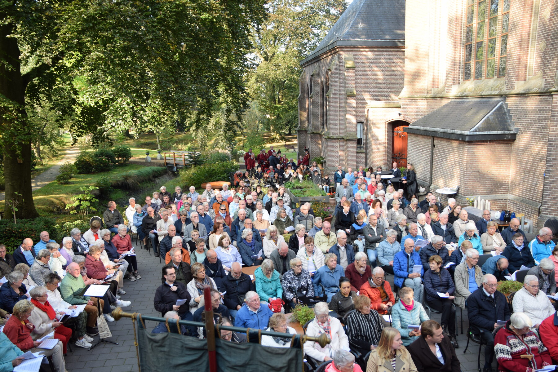 Op 28 september hebben we weer onze parochiedag gevierd. Ondanks een mistig begin van de ochtend waren vele parochianen naar Zieuwent gekomen. Daar hebben we de Eucharistie gevierd in de pastoorstuin van de H. Werenfriduskerk. De viering werd muzikaal ondersteund door een projectkoor onder leiding van Jan de Leeuw. Na afloop konden we elkaar ontmoeten onder het genot van koffie/thee en een broodje. Later waren er ook de nodige drankjes en versnaperingen. Al met al een geslaagde dag mede door de inzet van veel vrijwilligers.