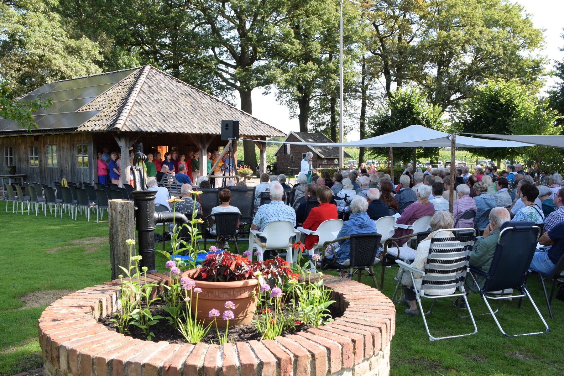 Foto's van de oecumenische openlucht viering op 13 augustus 2023 in de tuin van Koffiesköpke Olde Moat. Voorgangers waren ds. Hans Hinkamp en mevr. Betsy Hummelink. De muzikale begeleiding was in handen van het popkoor Friends.