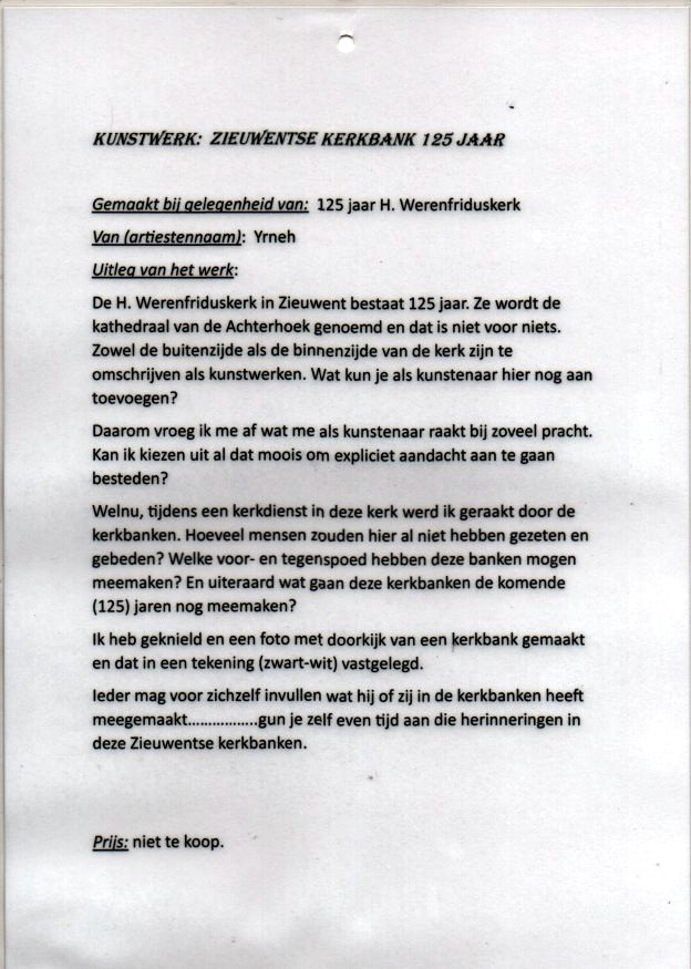 Van welk materiaal dan ook: het mag van steen of hout of een schilderij zijn. Abstract of modern zijn. Als het maar een nieuw werk is van 2024 over de Werenfriduskerk!”