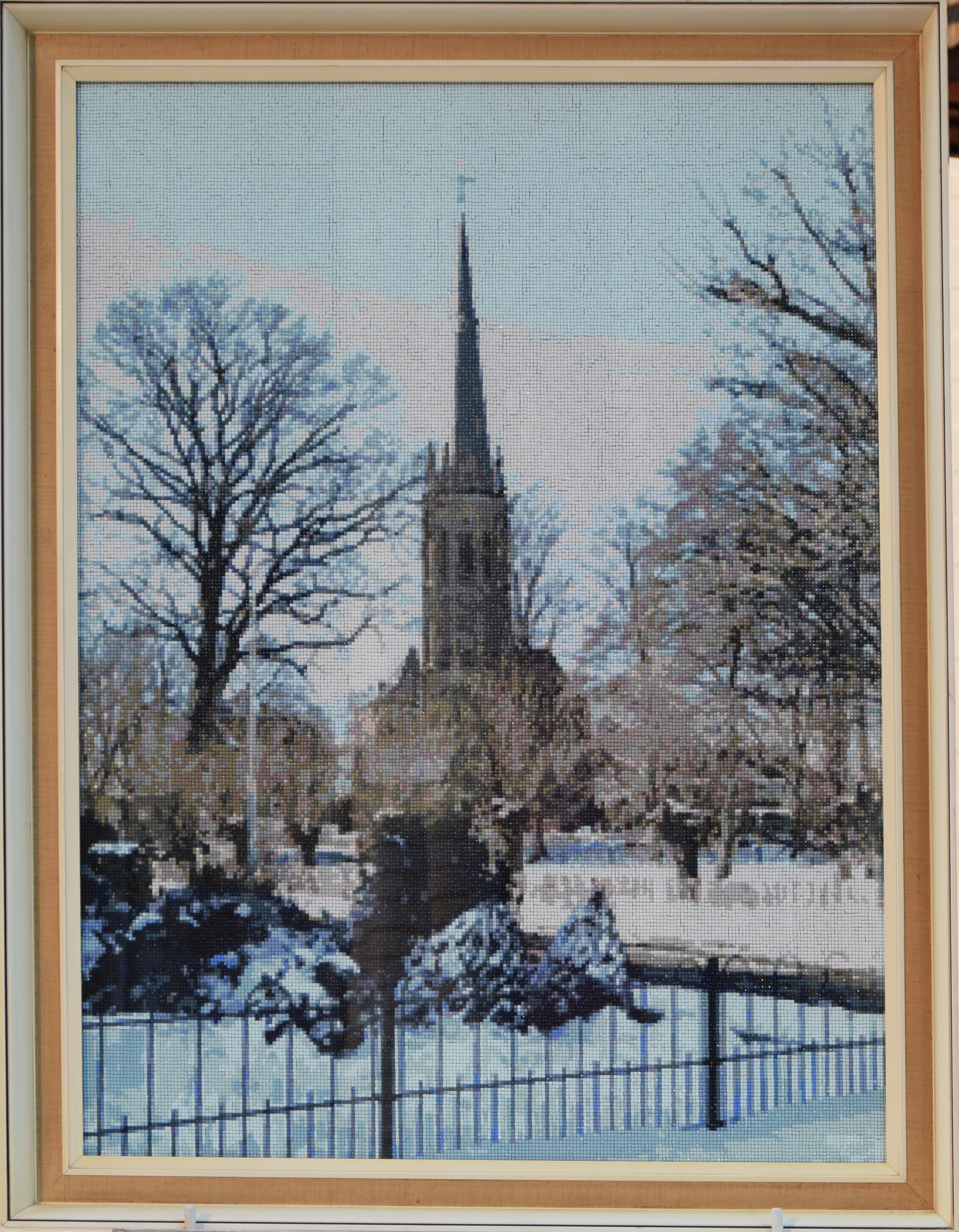 Het werk is een afdruk van de kerk en is gemaakt van witte albast.