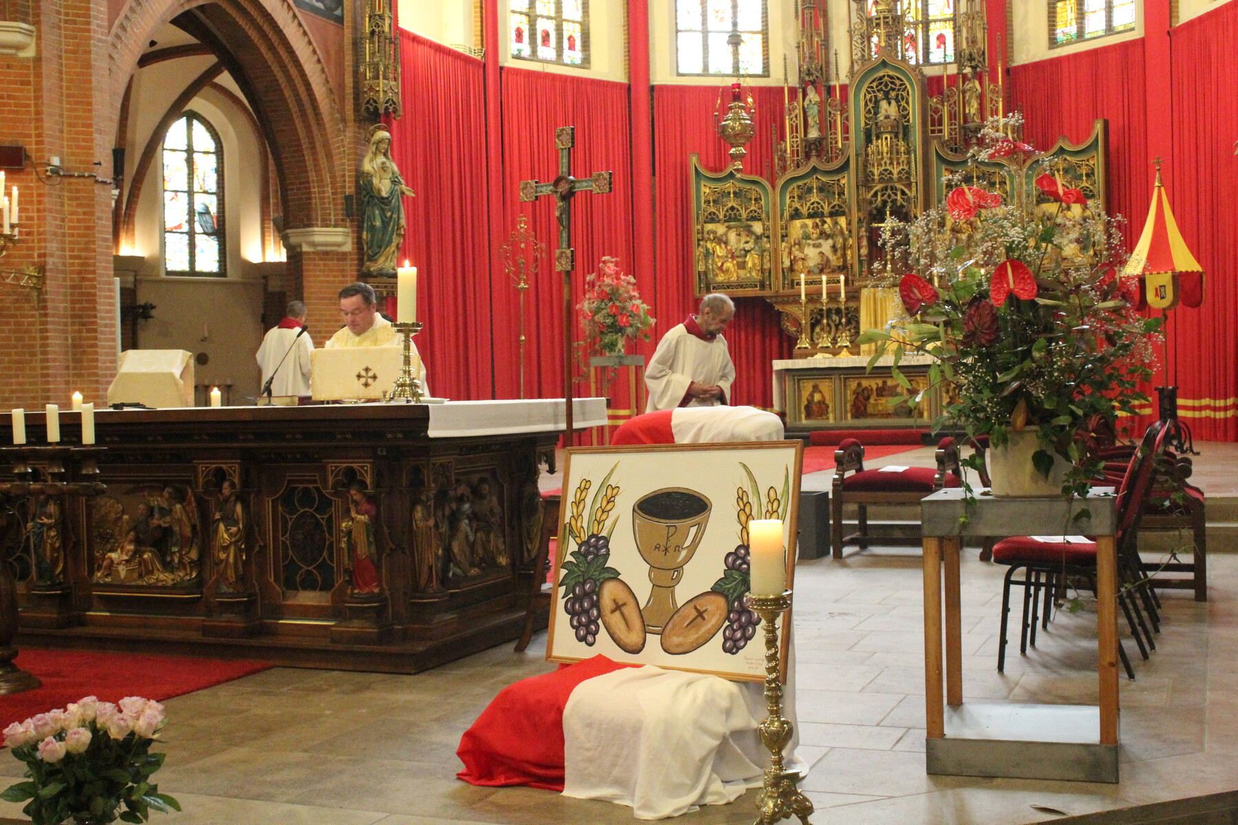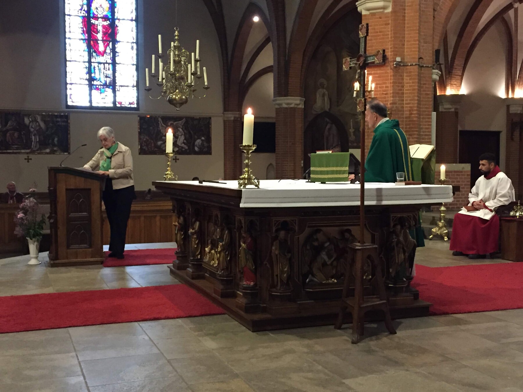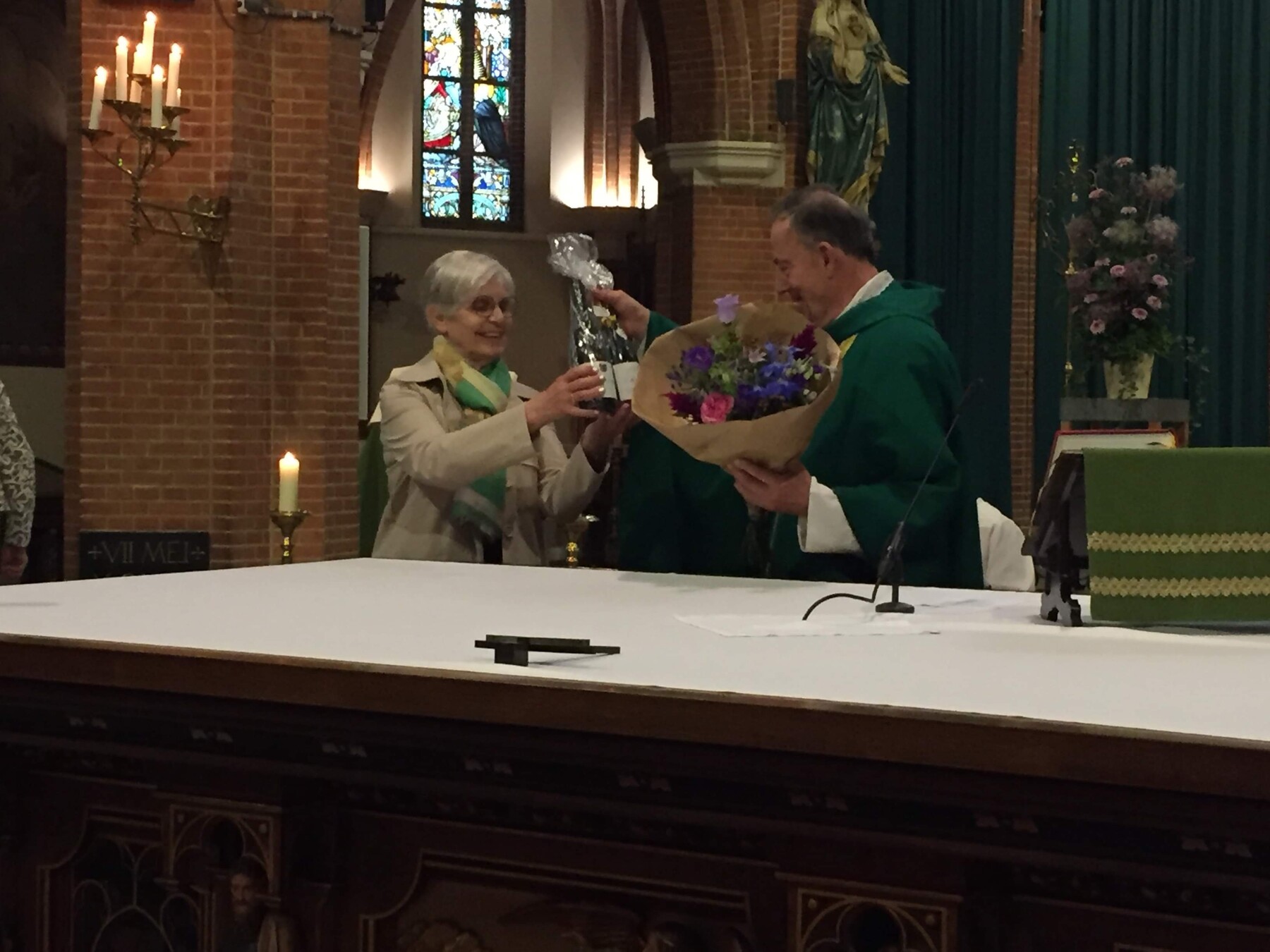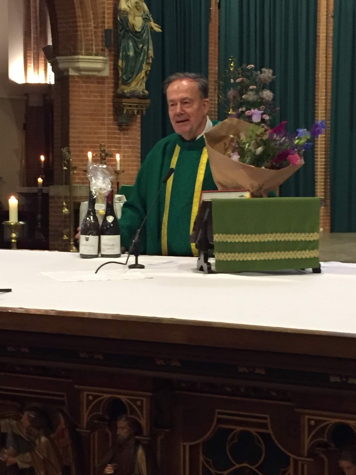 Zondag 16 juni werd pastoor Baneke aan het eind van de dienst in het zonnetje gezet. Hij is een graag geziene celebrant binnen onze parochie. Hij vierde zijn 10-jarig priesterschap. Namens het parochiebestuur werd hij toegesproken door Betsy Hummelink. Ook kreeg hij een bloemetje en een mooie attentie. Wij feliciteren pastoor Baneke met dit jubileum. Wij hopen dat hij ons pastorale team nog lang kan ondersteunen.