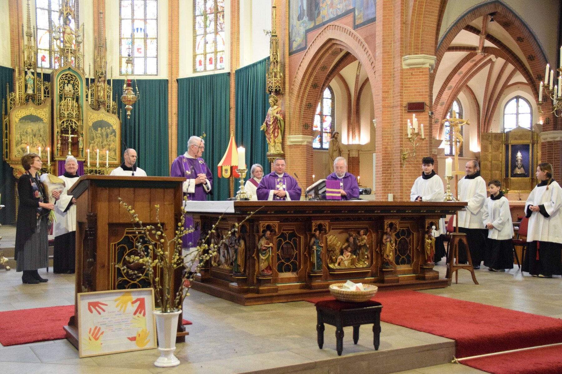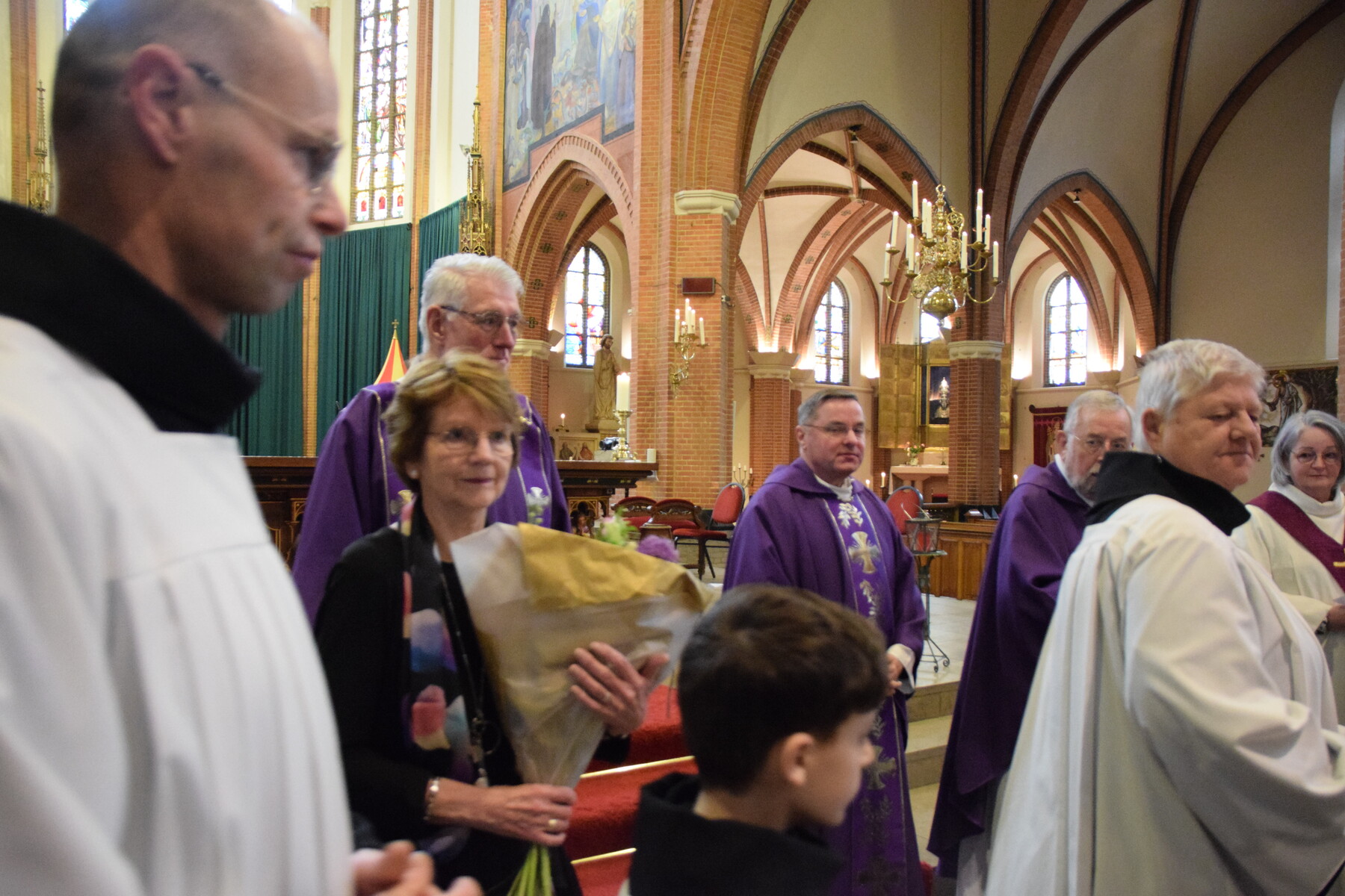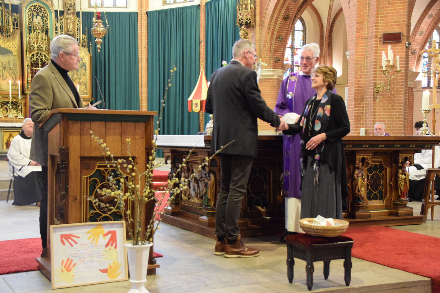 Diaken Cor Peters is met ingang van 1 januari 2024 met emeritaat gegaan. Op zondag 25 februari heeft hij in een goed bezochte Eucharistieviering in H. Calixtus basiliek in Groenlo afscheid genomen van onze parochie. Na afloop van de viering werd iedereen verwacht in het naastgelegen City-Lido voor een kop koffie of thee met daarna een drankje met wat hapjes. Na enige toespraakjes kon iedereen persoonlijk afscheid nemen van Cor Peters en zijn vrouw Agnes.